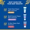 - Triple Paste is celebrated by parents who simply want the best for their baby’s delicate skin; store in your baby’s diaper bag for on-the-go ease with other baby essentials